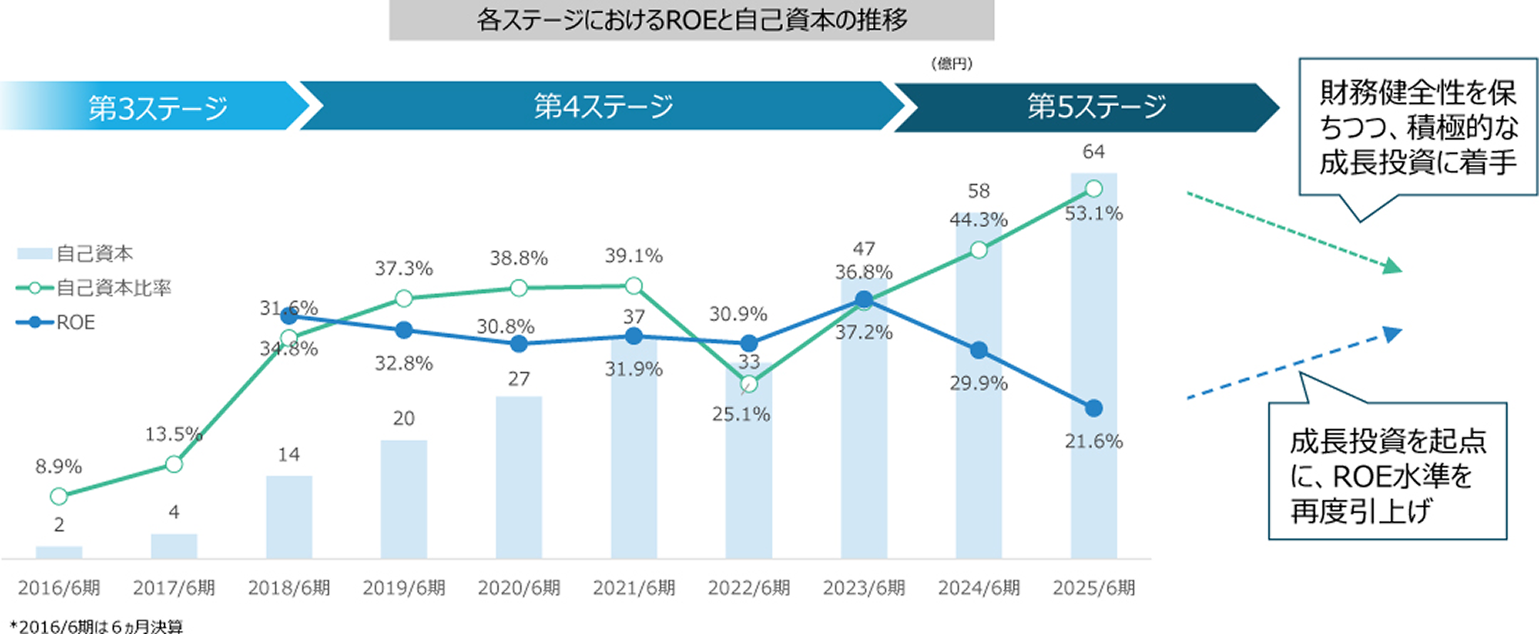 - 第4ステージでは資本の積上げが進む一方、利益成長はそれに負けないペースで進展。資本増と高ROEを両立